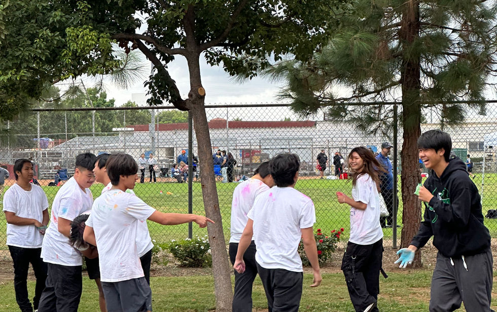 Key Clubbers are playing a game of Capture of the Flag with colored powder!